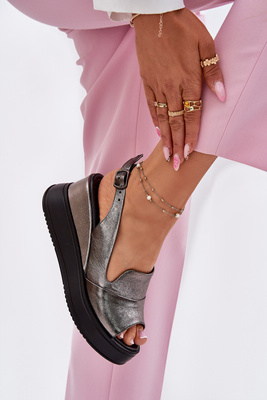 Womens Leather Wedge Sandals Artiker 54C0402 Graphite