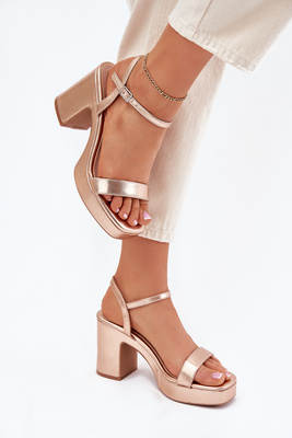 Eco Leather Sandals On Heel Rose Gold Lillita