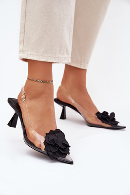 Transparent High Heel Sandals With Decorative Flower Black Risalie