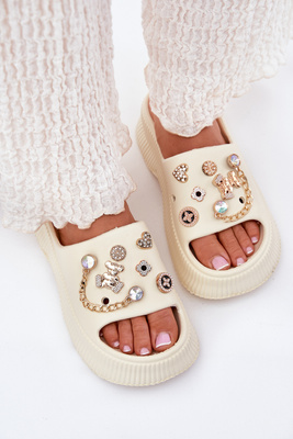 Ladies Foam Slippers With Golden Clips Light Beige Hortiana