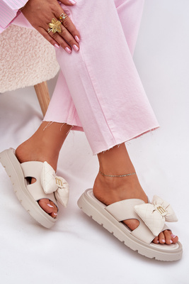 Ladies Leather Platform Sandals With Bow CheBello 4647 Beige