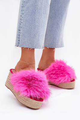 Women's Wedge Slippers With Fur And Weaving Fuchsia Virela