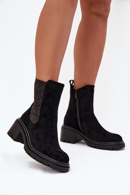 Women's Insulated Ankle Boots On Block Heel Black Zoralia