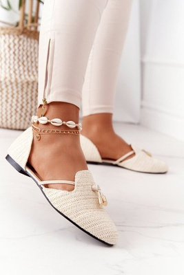 Pointed Toe Braided Ballerinas Lu Boo Beige
