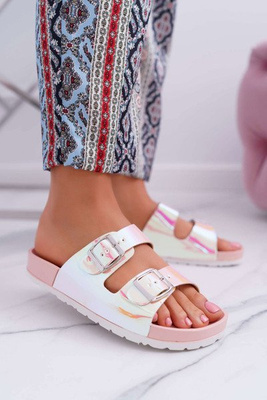 Women's Pink Profiled Iridescent Flip Flops Astramos