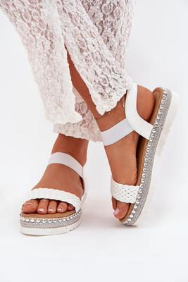 Women's Sandals With Weaving On Decorated Platform White Velara