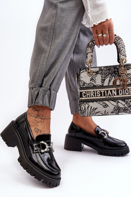 Women's Lacquered Boots On Embellished Heel D&A MR870-93 Black