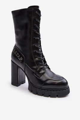 Leather Lace-Up Boots On Massive Heel Black Khariah