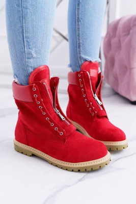 Lu Boo Women's Red Suede Timbers Trappers Zippers Nancy