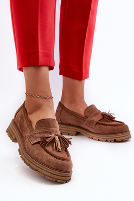 Women's Suede Loafers with Flat Heel and Decoration D&A TW101 Brown