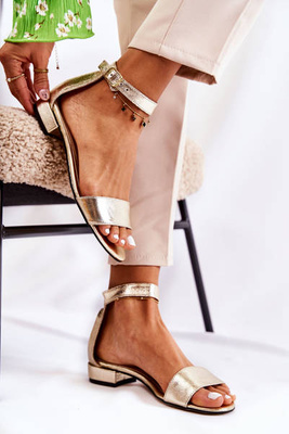 Women's Leather Sandals On A Flat Heel Golden Morlee
