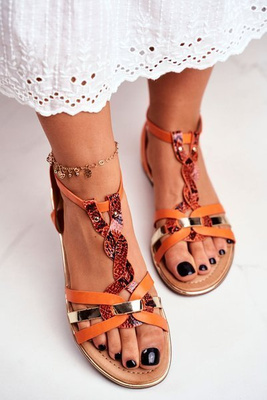 +5Elegant Sandals With Snake Pattern Orange Brooke