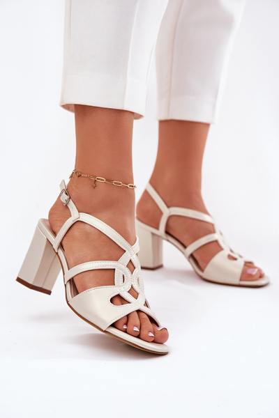 Women's Fur-lined Boots on Block Heel with Decorative Details Beige Lucinda