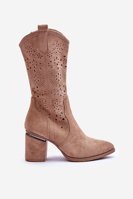 Women's Suede Perforated Cowboy Boots Beige S.Barski HY42-086