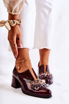 Leather Mosaic Shoes With transparent Decoration Burgundy Delaver