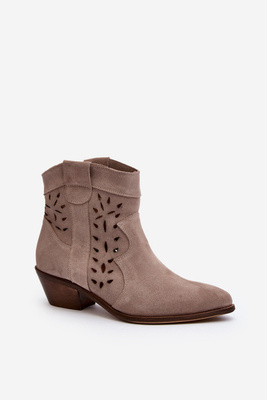 Zazoo 2870 Suede Low Heel Cutout Ankle Boots Beige
