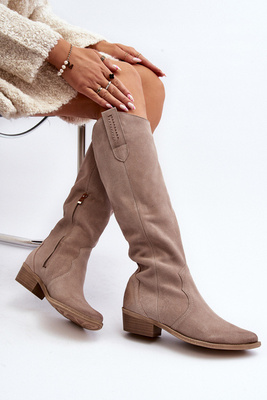 Zazoo 3427 Women's Suede Cowboy Boots Cappuccino