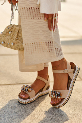 Women's Wedge and Platform Sandals with Decorations S.Barski HY056 Beige