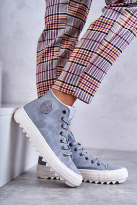 +3Women's Leather Warm Sneakers Big Star EE274115 Light Blue