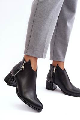 Women's Leather Boots On Low Heel Zazoo 4111 Black