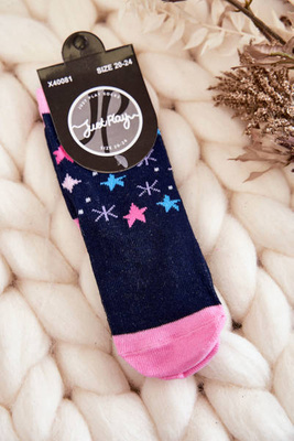 Women's Funny Christmas Socks In stripes with Santa Claus Navy blue and white