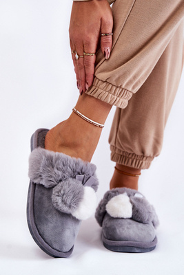 Women's Fur Slippers With Bow Grey Ryana