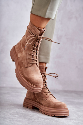 Fashionable Suede Lace Up Boots Beige Selma
