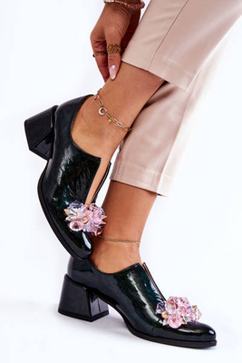 Varnished Mosaic Shoes With Transparent Decoration Green Delaver