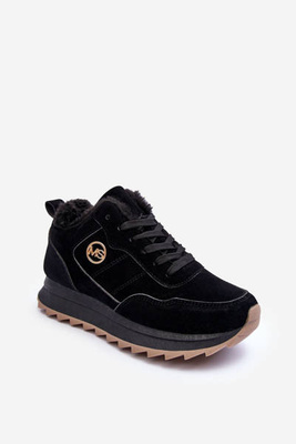 Women's Massive Suede Boots on a Flat Heel Black Lunai