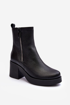 Leather Boots with Massive Heel and Zippers Black Littosa