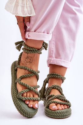 Women's Flat Sandals With A Decorative Belt Gold Berry