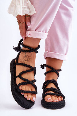 Women's Flat Sandals With A Decorative Belt Black Berry