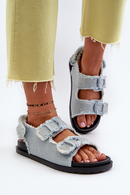 +6Women's Jeans Flip Flops on Cork Platform with Straps Blue Doretta