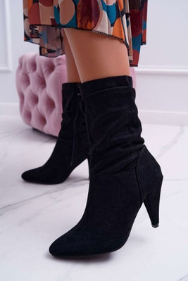 Women's Heeled Boots Spring Leather Suede Black Nicole 2430