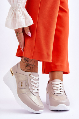 Chaussures de sport compensées en cuir pour femmes Beige Rebeca
