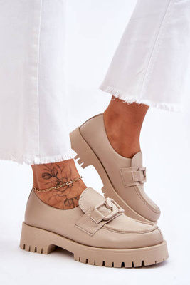 Zazoo 10141 Mocassins Plateformes en Cuir avec Décoration Beige
