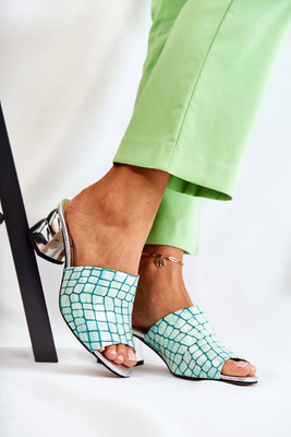 Chaussons Femme Cuir Motif Crocodile Sur Talon Vert clair Perry