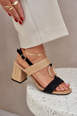 Sandales à Talon Bloc Noir-Beige Afleeria