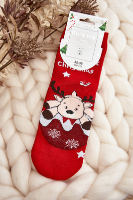 Chaussettes de Noël en coton pour hommes avec renne rouge