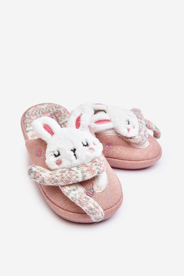 Chaussons enfant en fourrure avec lapin rose Dicera