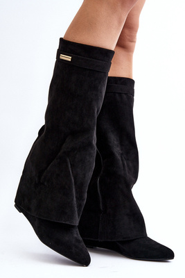 Bottes compensées isolées pour femmes avec jets en daim noir Lu Boo