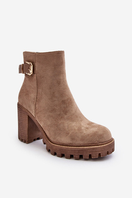 Bottes En Daim Pour Femmes Sur Le Talon Avec Décoration Beige Menoria