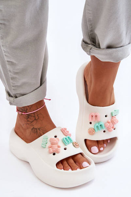 Pantoufles en mousse souple avec décorations pour femmes Blanc Lorie