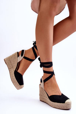 Sandales nouées sur un talon compensé haut Black Lendy