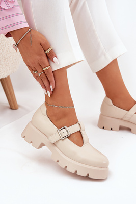 Chaussures En Cuir Pour Femmes Avec Boucle Laura Messi 2980 Beige Foncé