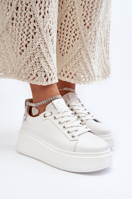 Chaussures en cuir à semelle épaisse pour femmes Zazoo 2919 blanc