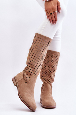 Cuissardes Femme En Daim Ajouré Beige Savannah