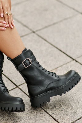 Bottes De Travail Isolées Avec Sangle Et Boucles Décoratives Noir Viveria