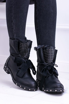 Bottines Doublées En Daim Avec Perles Et Ruban Black Perla