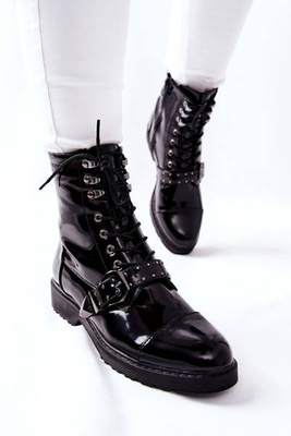 Bottines Plates Travailleurs Femme Laquées Kaki Maxine